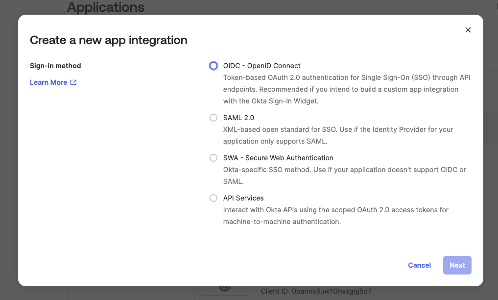 - Select OIDC and click Next.