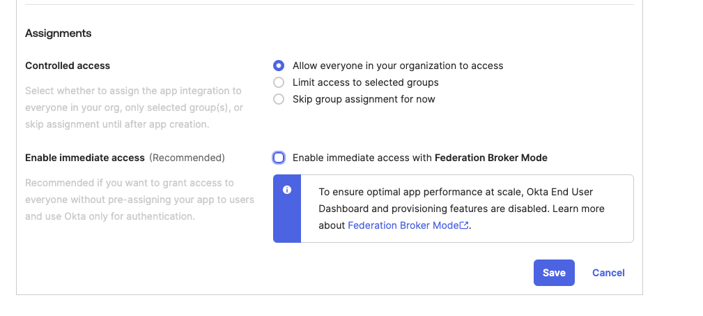 - In the Controlled access section, select a correct point, in the US case select Allow everyone in your organization to access, and click Save.