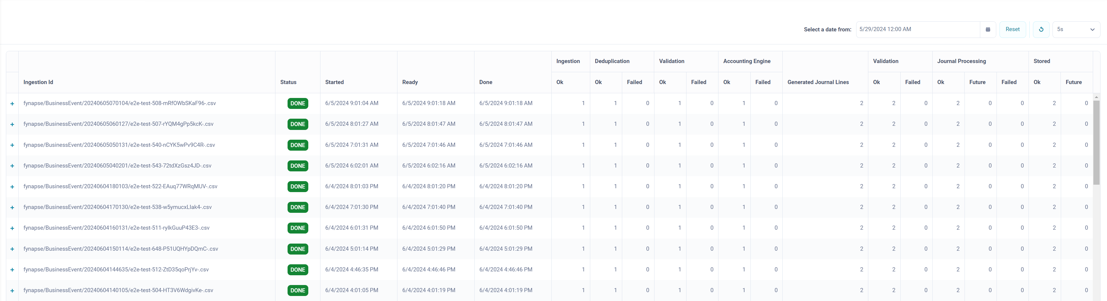 - Generated Journal Lines - the number of Journal Lines generated by the Accounting Engine from the Business Events ingested in the ingestion file