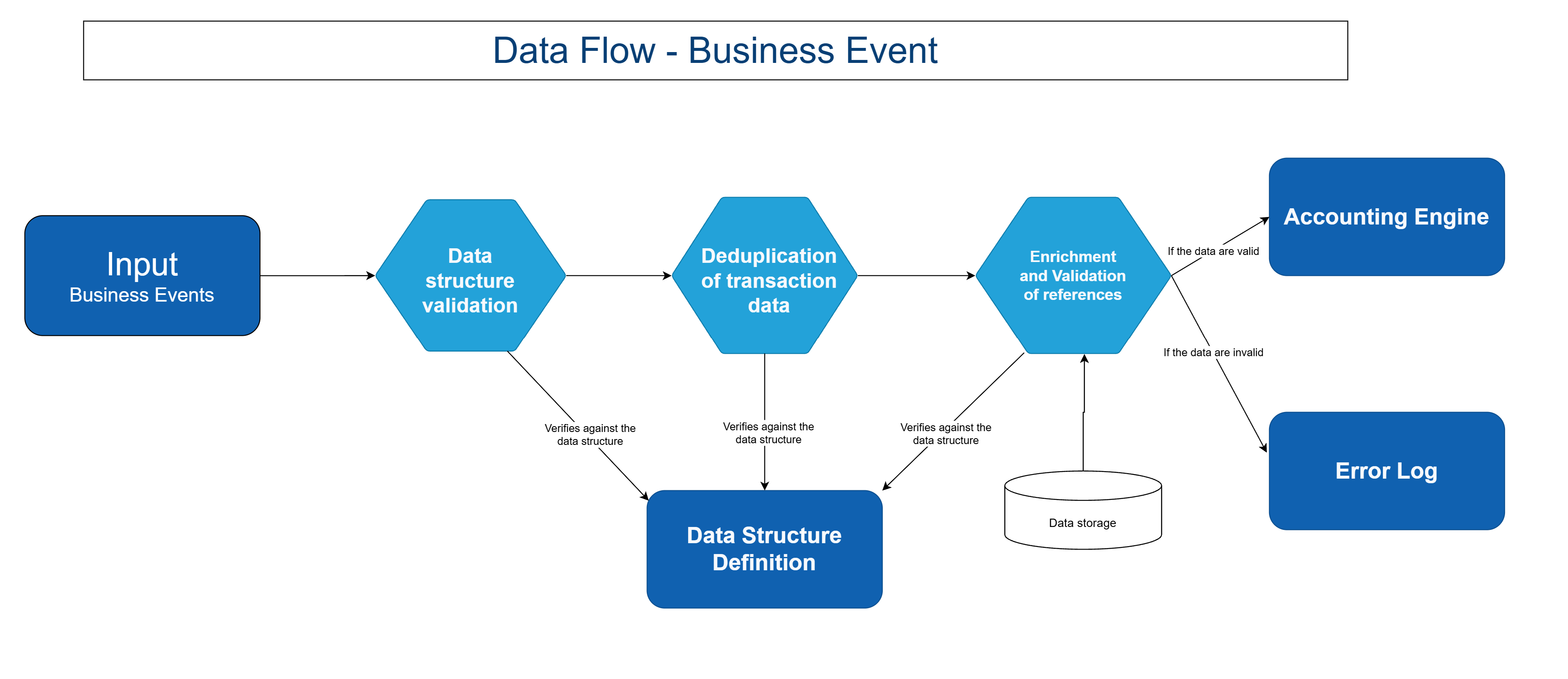 First, the incoming Business Event is enriched during processing in the Accounting Engine, as illustrated by the diagram below: