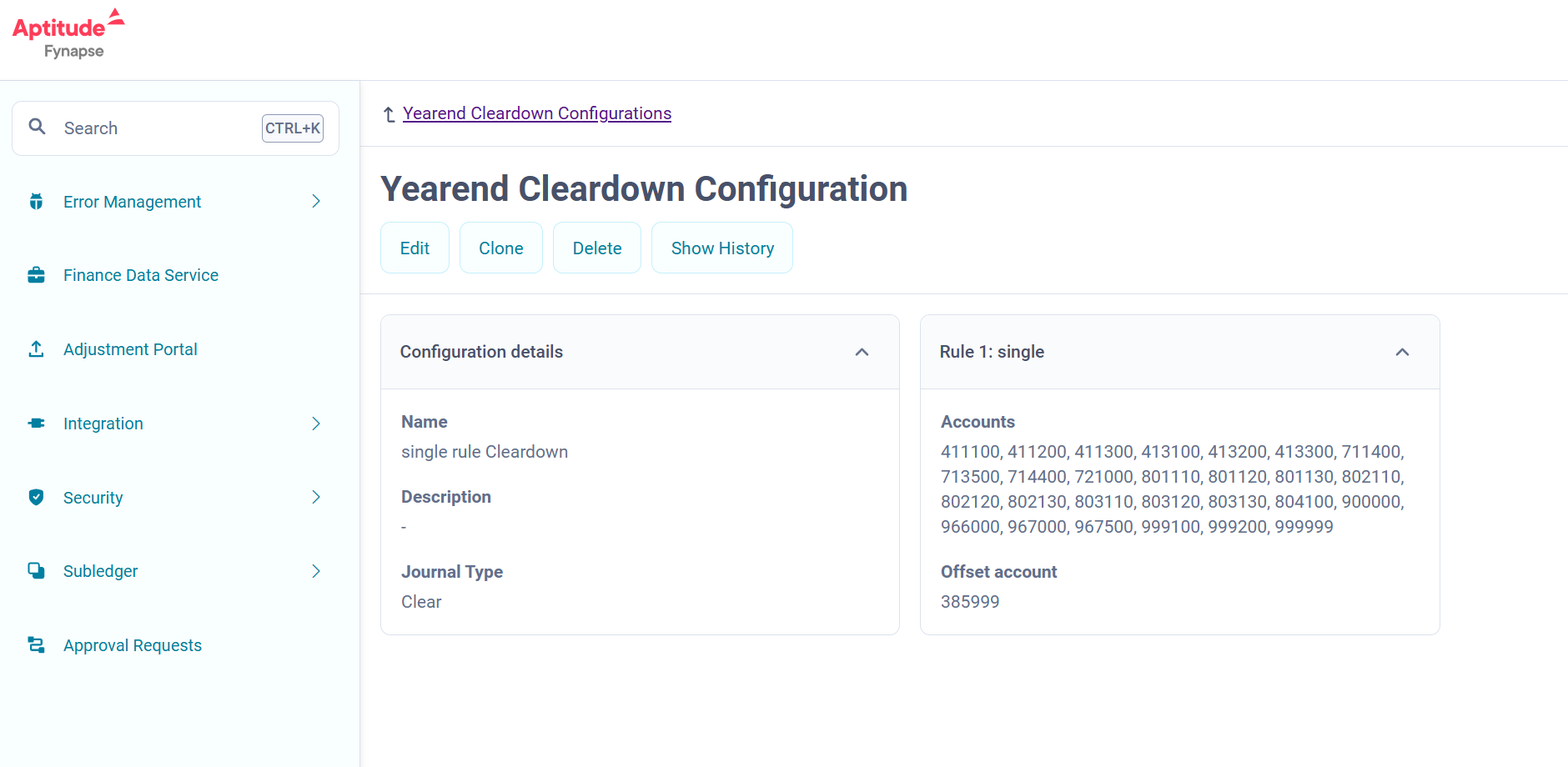 - Go to Configuration > Cleardown > Yearend Cleardown Configurations.