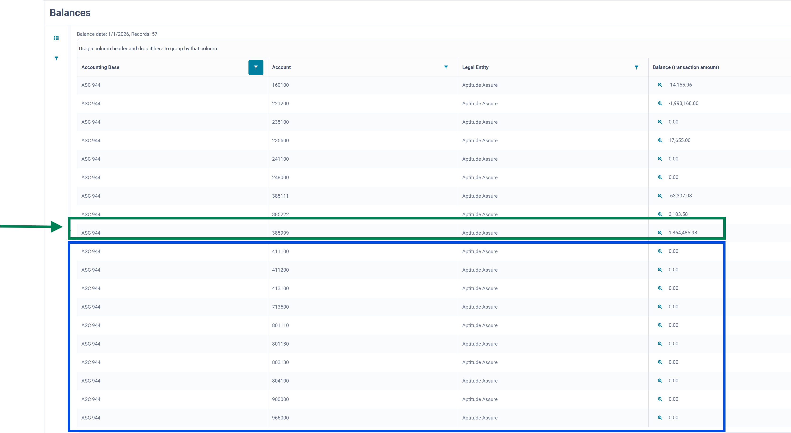 After the Yearend Cleardown process was run, the remaining amounts from these Accounts were cleared to the Offset Account (marked in green):